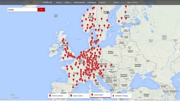 Iata cum arata in 2015 reteaua de superchargere pe harta Europei